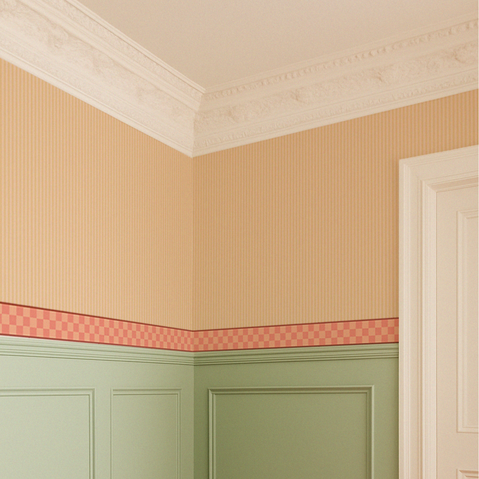 Avec sa composition graphique à damier, la frise de papier peint CLYDE est l’accessoire idéal pour apporter une touche décorative affirmée, en un clin d’œil. Jouée seule sur un mur ou associée à un papier peint, elle habille l’espace avec style et simplicité. Pensée en duo, la collection de frises BONNIE & CLYDE invite à redessiner les volumes, à rythmer les surfaces et à révéler le caractère de chaque intérieur. Une manière élégante et audacieuse de repenser sa décoration sans tout changer !
