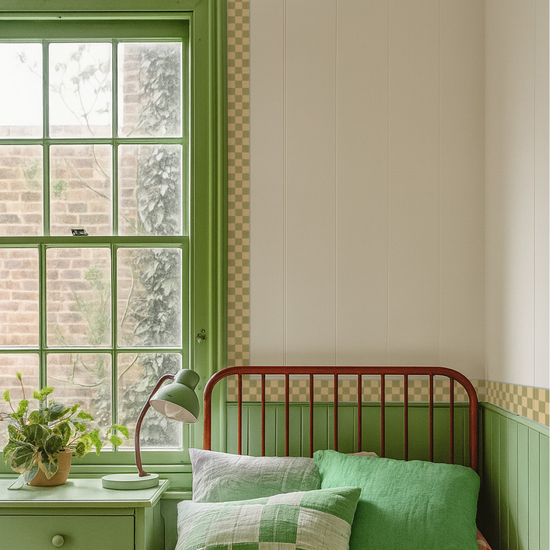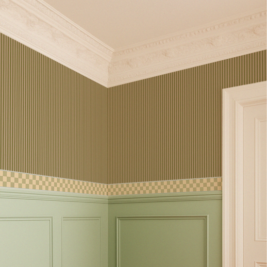 Avec sa composition graphique à damier, la frise de papier peint CLYDE est l’accessoire idéal pour apporter une touche décorative affirmée, en un clin d’œil. Jouée seule sur un mur ou associée à un papier peint, elle habille l’espace avec style et simplicité. Pensée en duo, la collection de frises BONNIE & CLYDE invite à redessiner les volumes, à rythmer les surfaces et à révéler le caractère de chaque intérieur. Une manière élégante et audacieuse de repenser sa décoration sans tout changer !