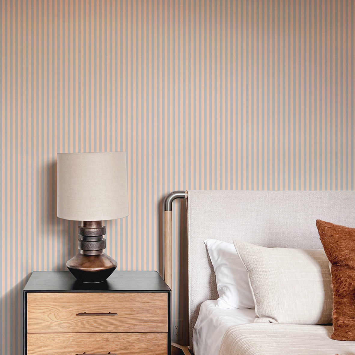 Elégant papier peint rayé, ERNEST est à la fois classique et graphique. Ses rayures bicolores permettent de jouer sur les volumes. Conçues pour permettre de créer des ambiances coordonnées ou franchement contrastées, pouvant également être combinées, les déclinaisons colorées d'ERNEST permettent un nombre infini de décors. Associé aux fines rayures de son alter ego AUGUSTE, ERNEST permet aussi une multitude de combinaisons graphiques !